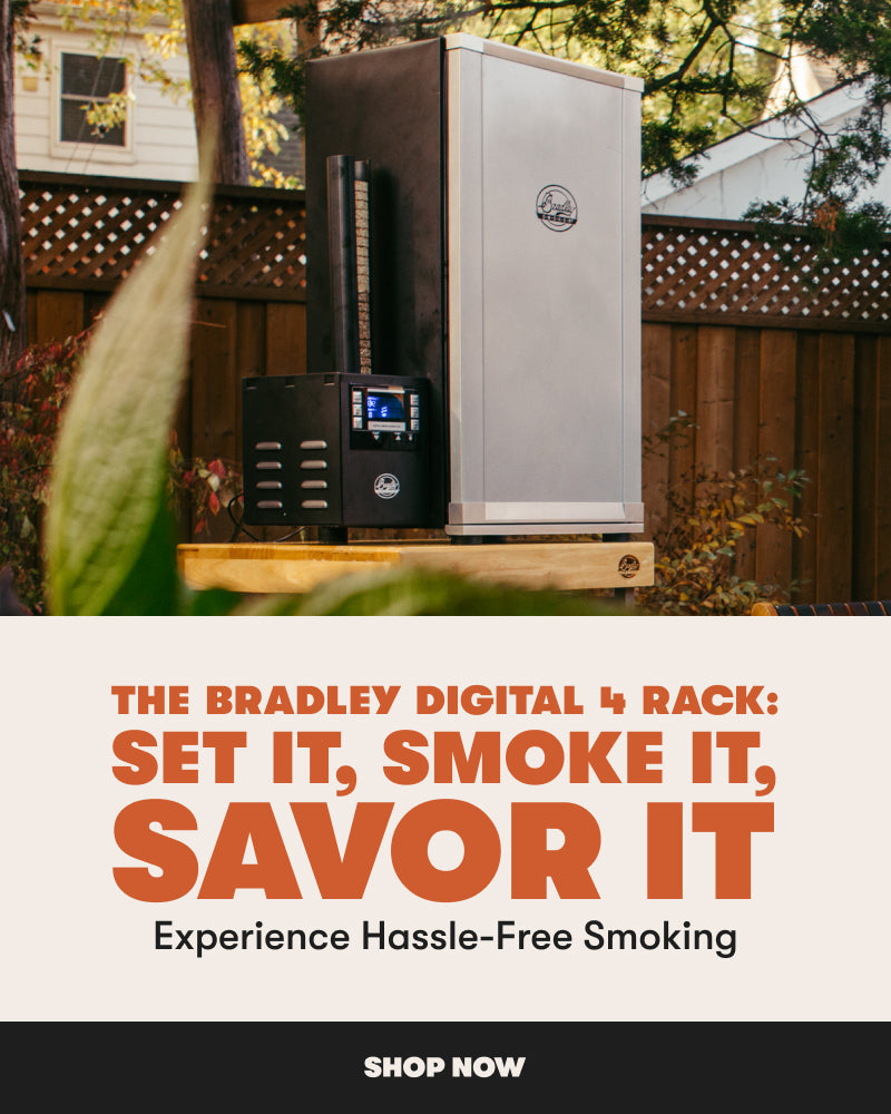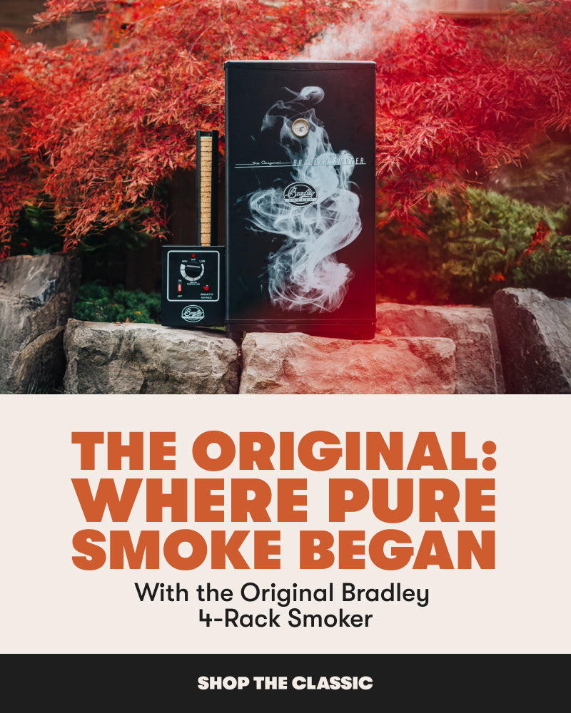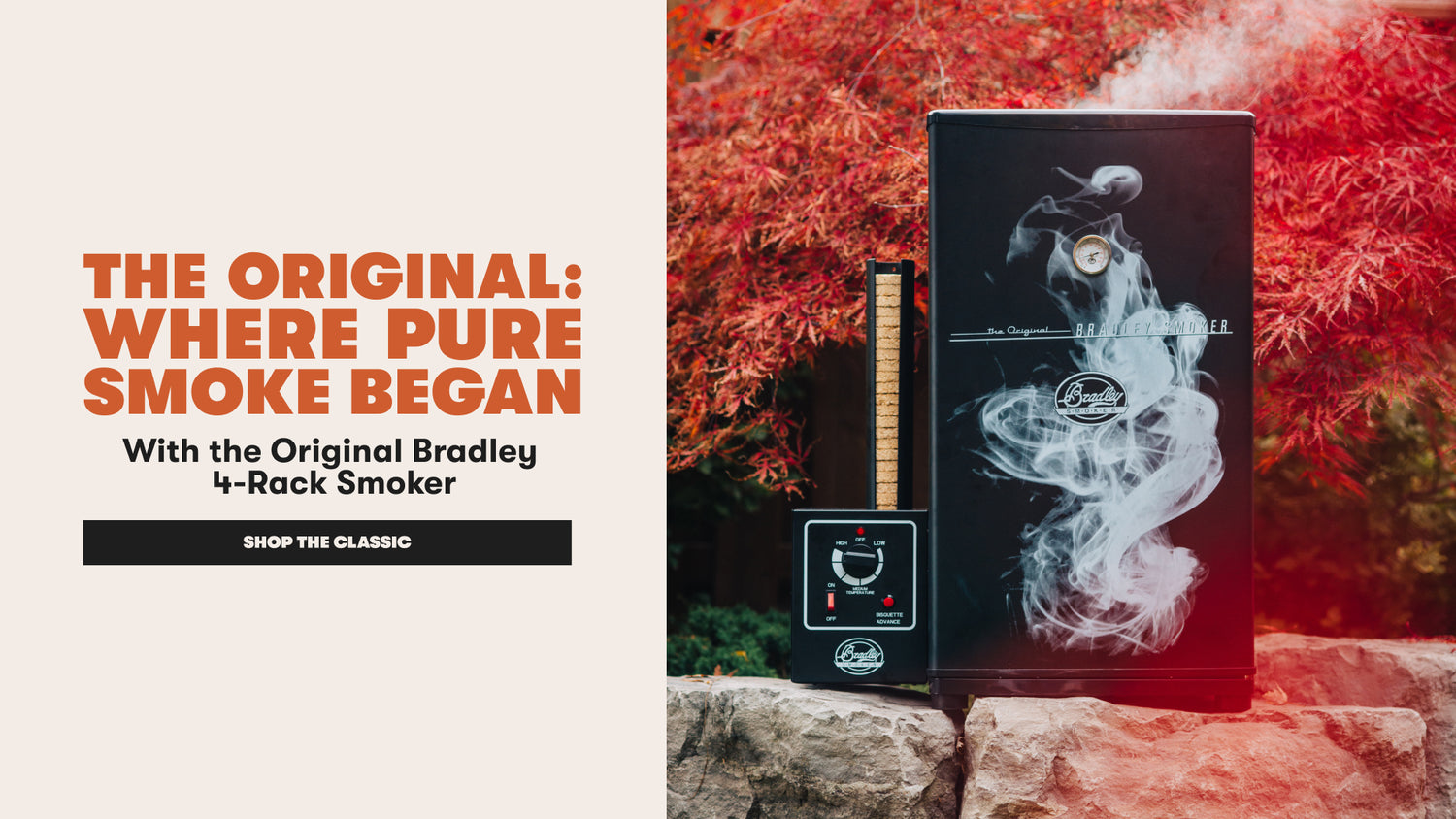 Food smoking isn’t all adrenaline and flame. Smoke says something beautiful’s in the air. Your food nurtured slowly over time by a method that’s timeless. The Bradley Smoker is a whole new generation of food smokers. Pick a recipe, a bisquette, and then set the time and temp. See how a Bradley Smoker so easily adds flavor to everything.